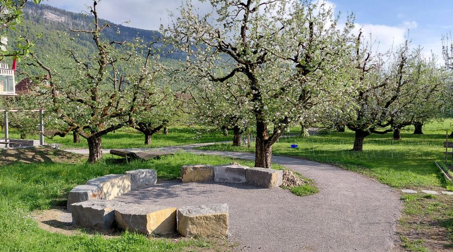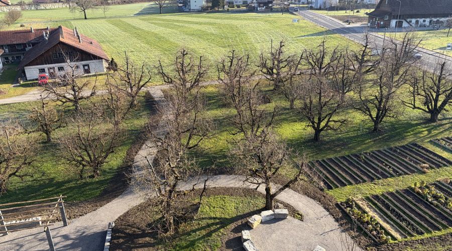 Anfang Jahr sind die Bagger aufgefahren und haben unseren Obstgarten in einen attraktiven Garten-Erlebnisraum verwandelt. Es sind rollstuhlgängige Wege geschaffen worden und Strukturen für die Biodiversität entstanden. Im Frühling jetzt werden wir noch alles bunt bepflanzen.